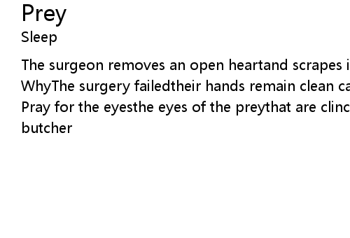 Pray for the eyesthe eyes of the preythat are clinched tight in the fist of a butcher