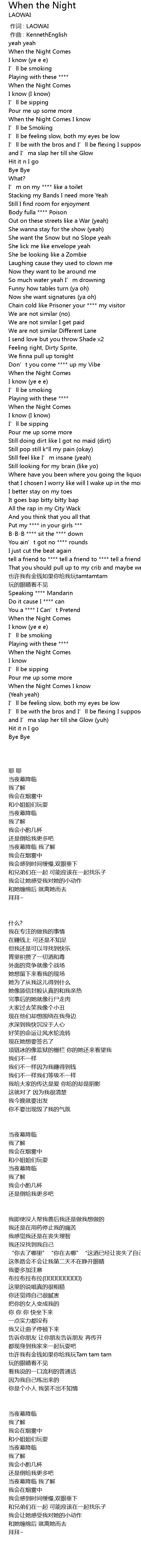 | [01:41.90] | Where have you been where you going the liquor is flowing the path that I chosen I worry like will I wake up in the morning like wow |