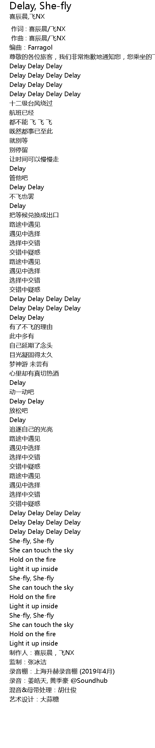 | [04:25.13] | 录音棚:上海升赫录音棚 (2019年4月) |