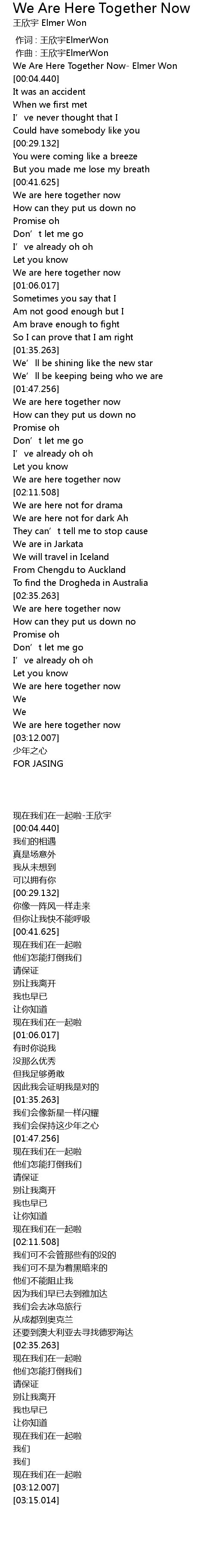 | [00:01.445] | We Are Here Together Now Elmer Won |