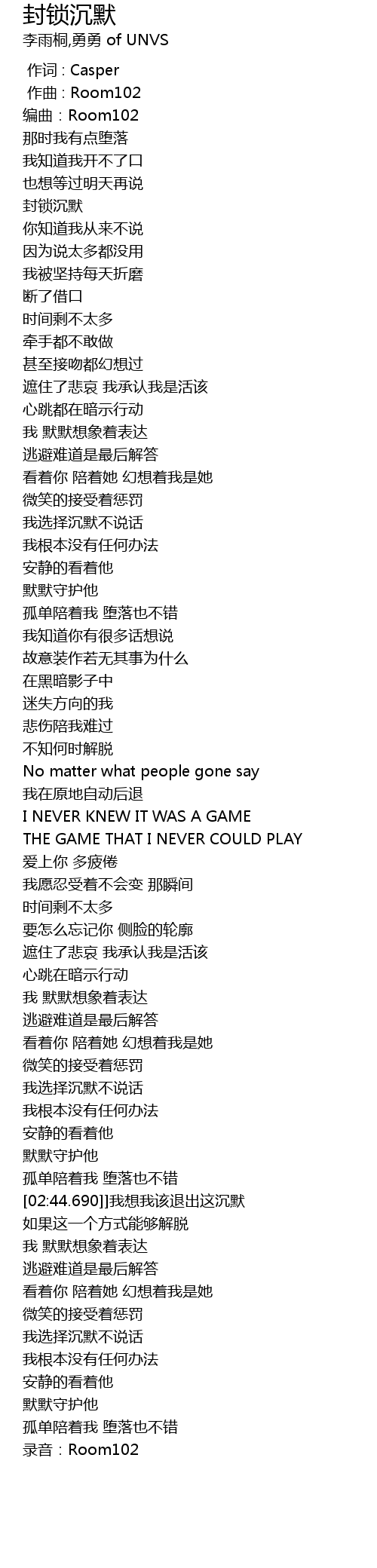 | [02:29.129] | wǒ xuǎn zé chén mò bù shuō huà |