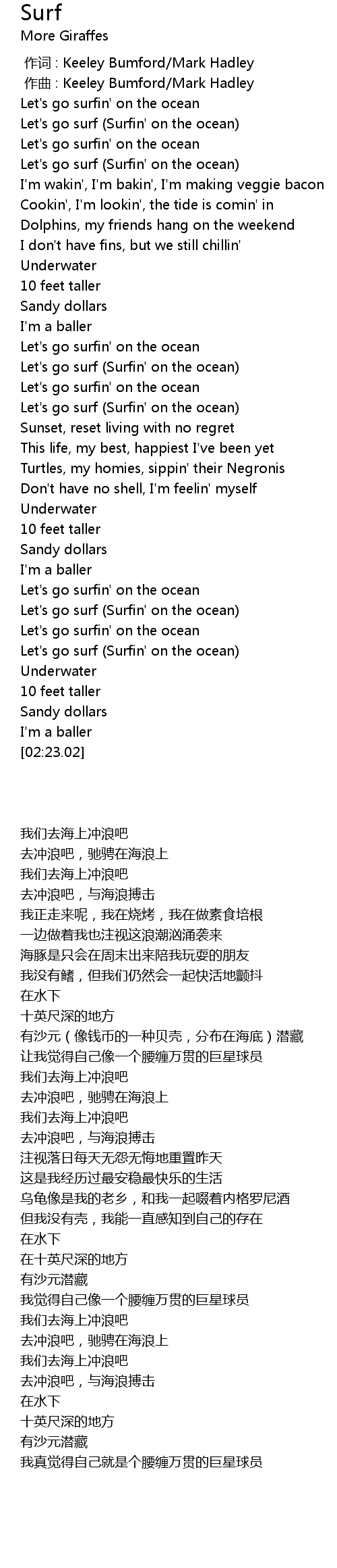 | [01:43.63] | Let's go surf (Surfin' on the ocean) |