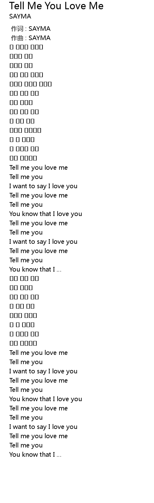 - Tell Me You Love Me