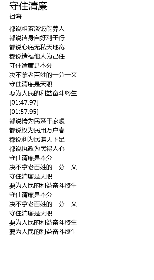 | [01:39.13] | 要为人民的利益奋斗终生 |