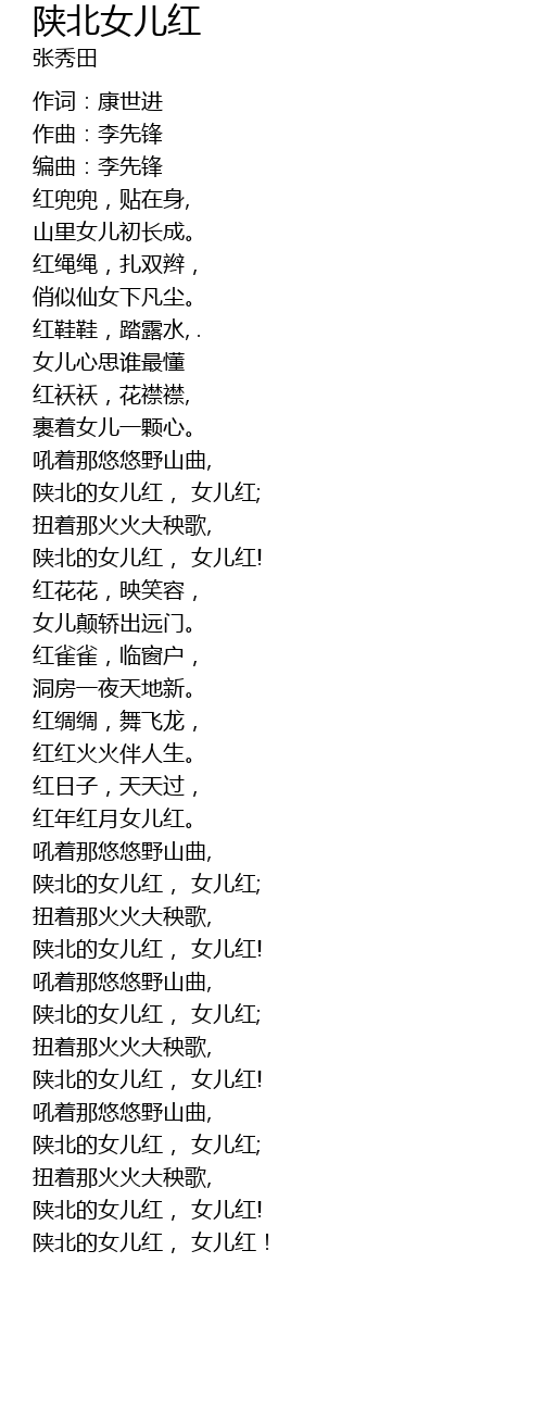 | [02:58.33] | shan bei de nv er hong, nv er hong |