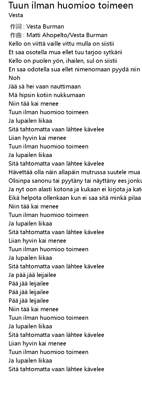 | [02:55.09] | Tuun ilman huomioo toimeen |