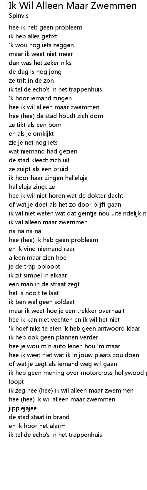 ik zeg hee (hee) ik wil alleen maar zwemmen |