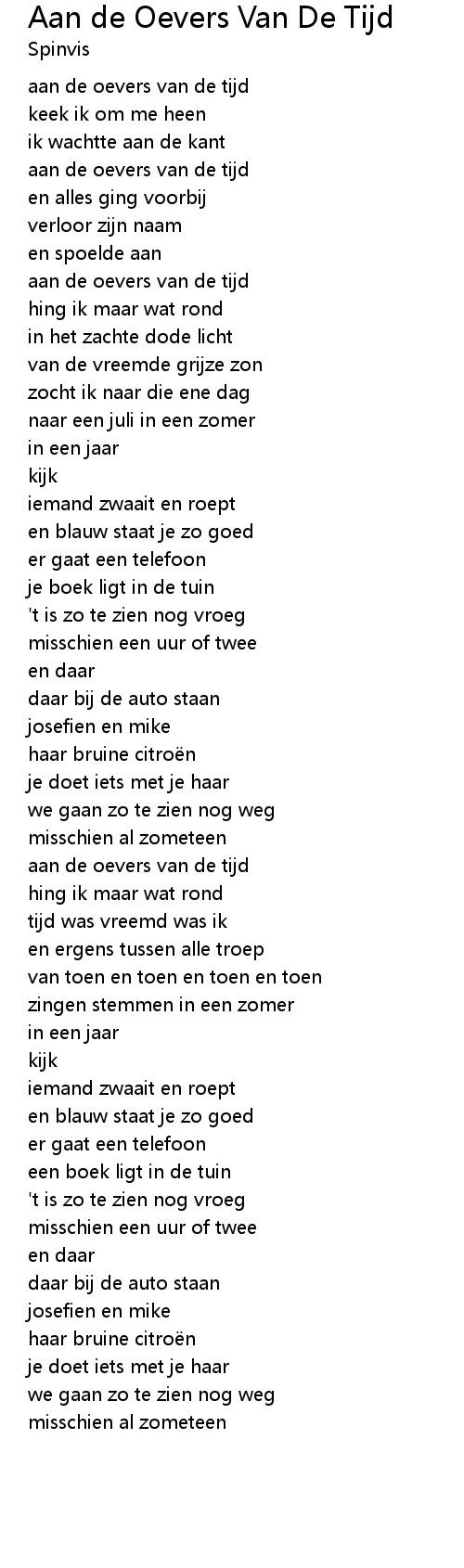 | Song | Aan de Oevers Van De Tijd |