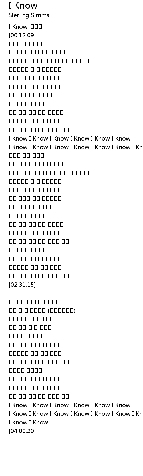 | [03:43.29] | I Know I Know I Know I Know I Know I Know I Know |