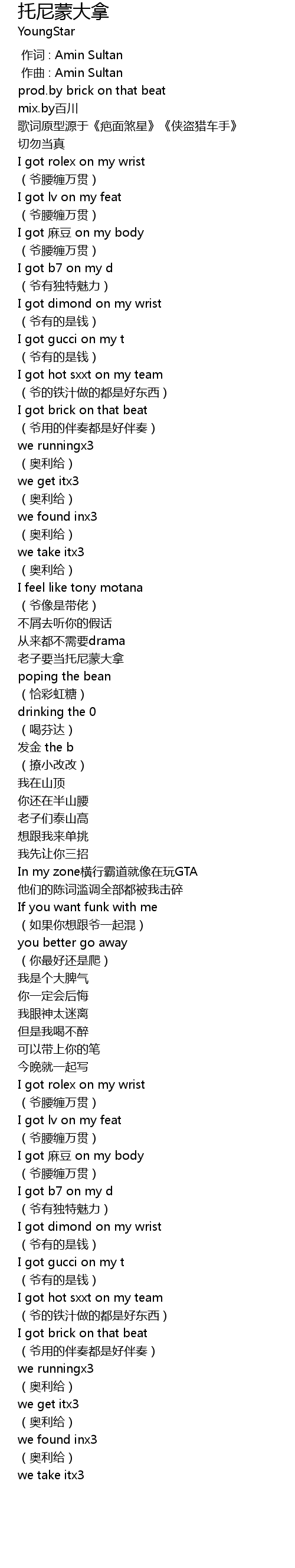 | [00:09.916] | 歌词原型源于《疤面煞星》《侠盗猎车手》 |