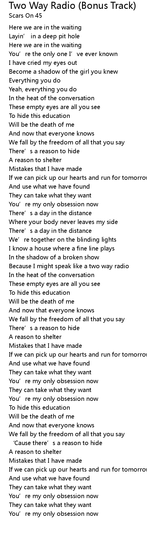 | [02:00.56] | Because I might speak like a two way radio |
