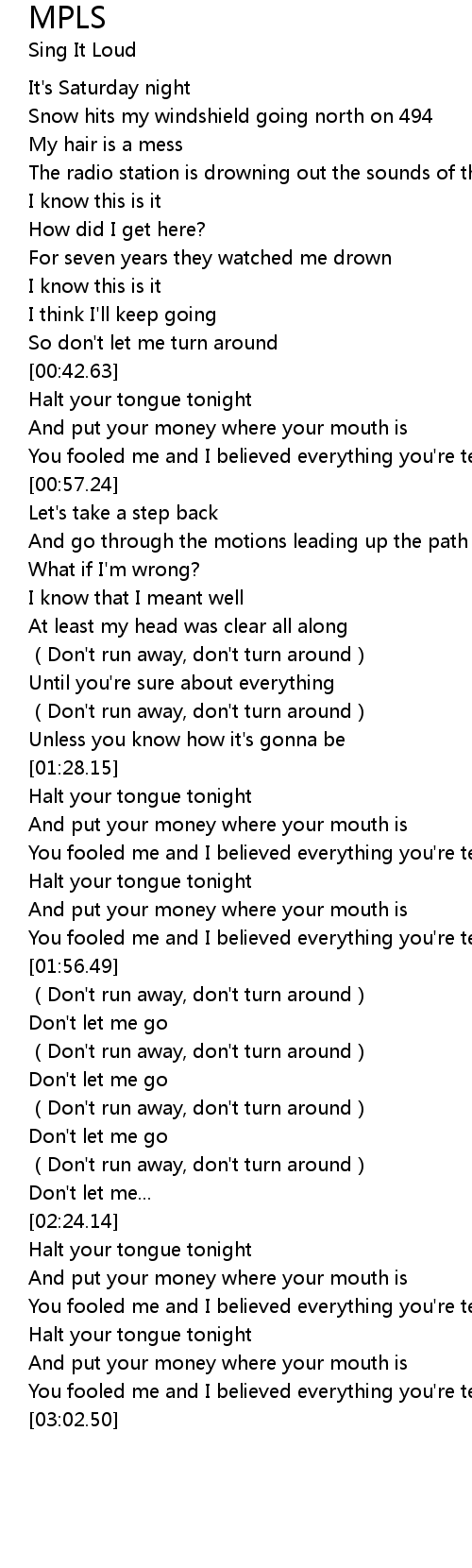 | [00:42.84] | Halt your tongue tonight |