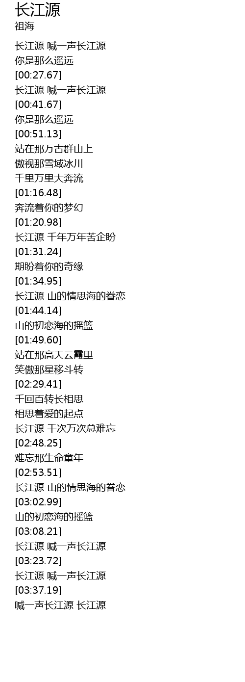 | [03:26.98] | 长江源 喊一声长江源 |
