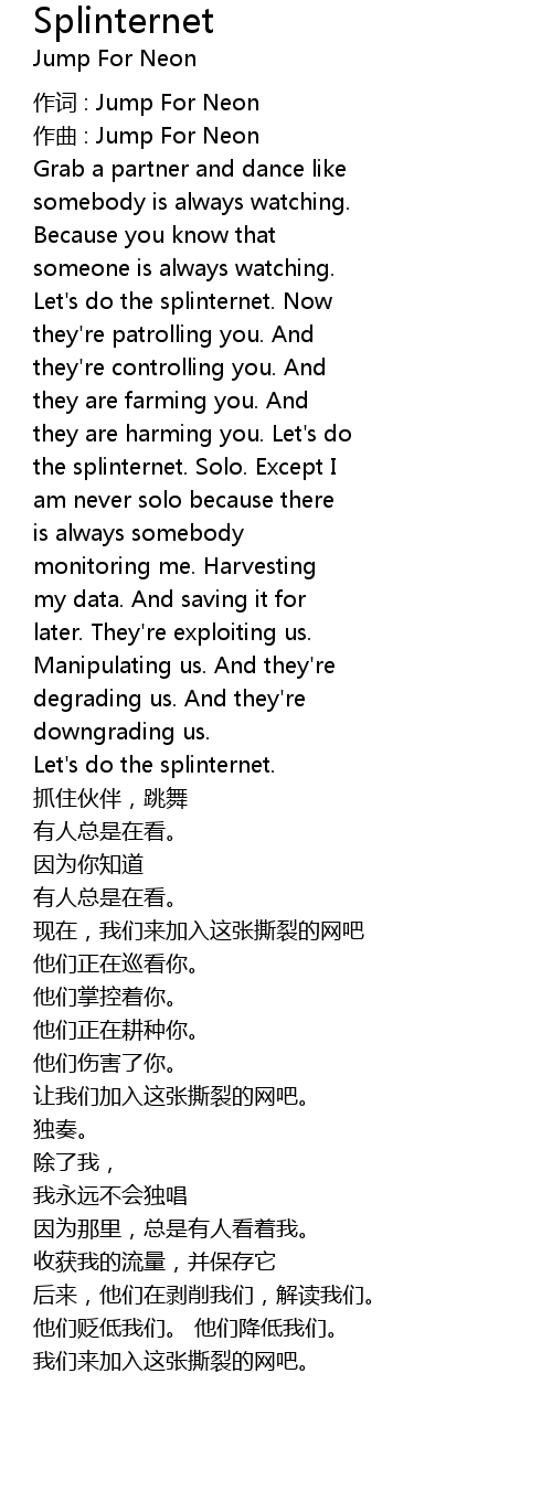 | 作词 : Jump For Neon | |