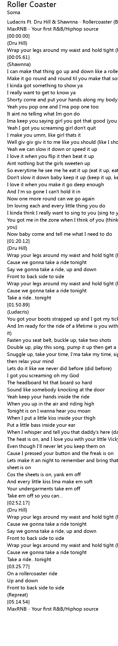 | [00:-7.52] | Ludacris Ft. Dru Hill Shawnna Rollercoaster Bonus Track |