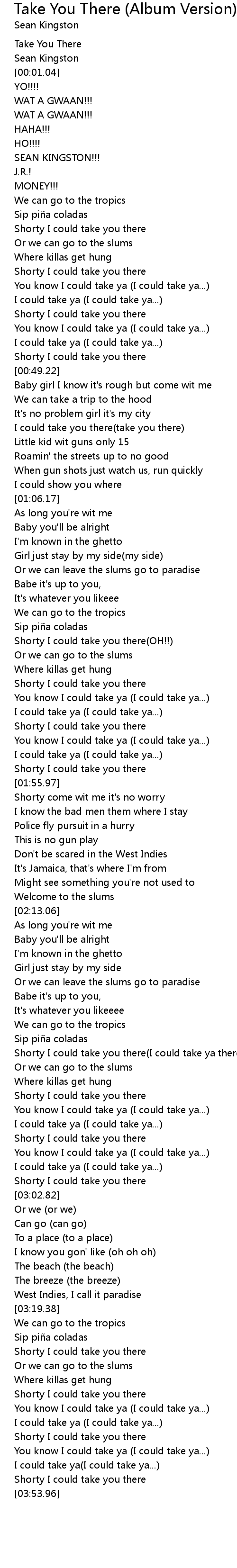 | [02:34.40] | Shorty I could take you there I could take ya there.. take ya |