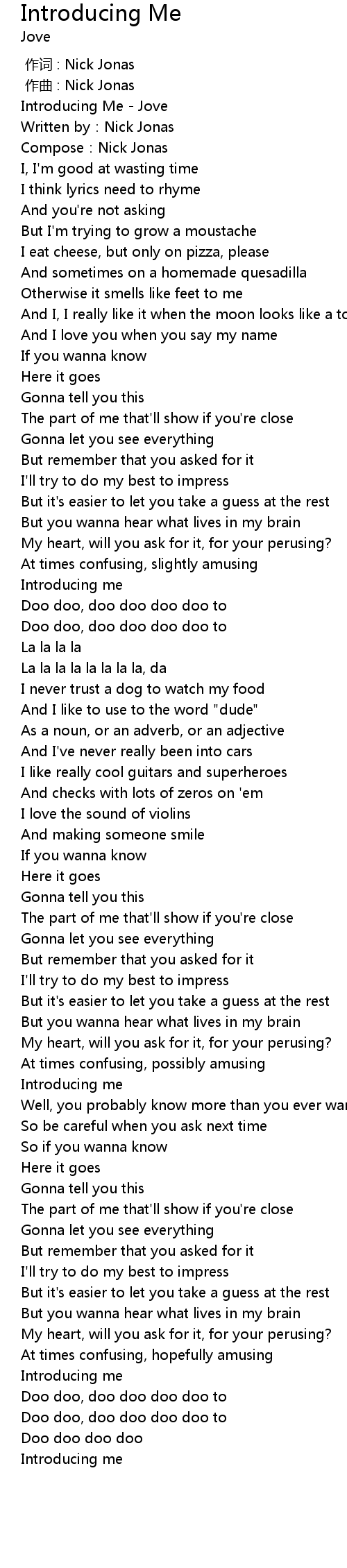 | [00:05.17] | Compose: Nick Jonas |