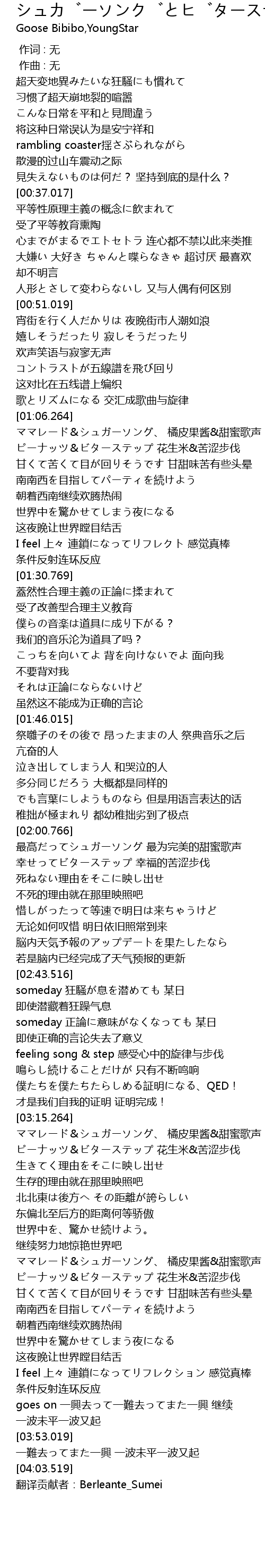 | [03:32.519] | ピーナッツ&ビターステップ 花生米&苦涩步伐 |