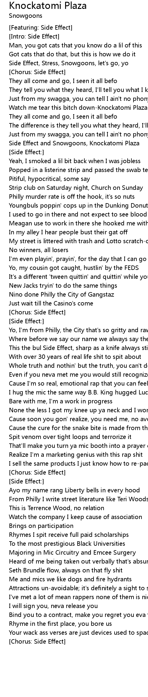 Side Effect and Snowgoons, Knockatomi Plaza