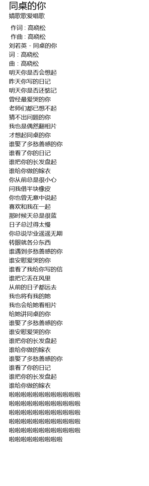 | [00:07.818] | 刘若英 - 同桌的你 |