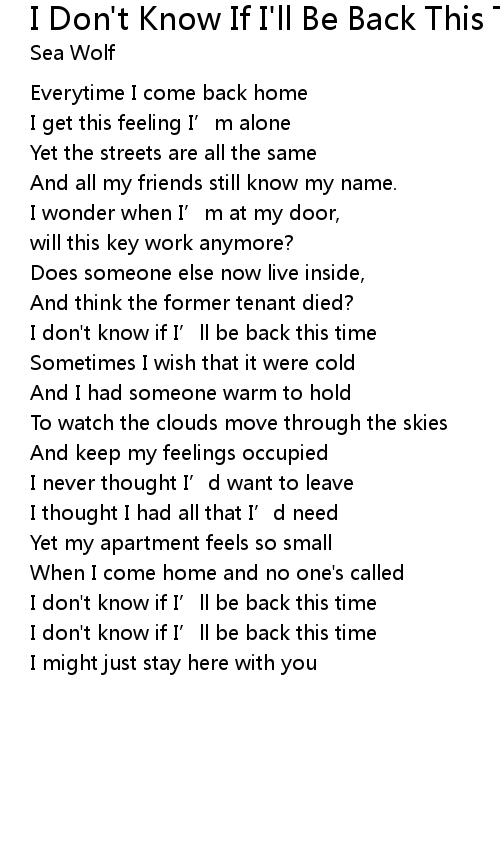| I don' t know if I' ll be back this time | |