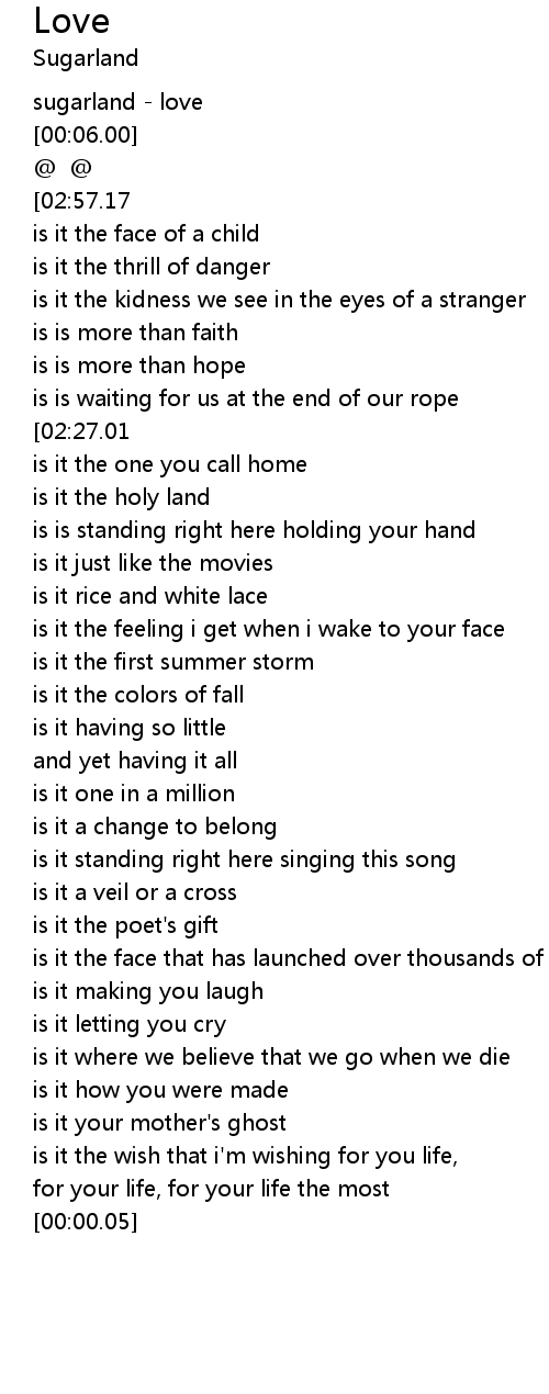 | [02:35.00][02:27.01][01:46.60][01:39.05][00:54.63][00:47.00] |