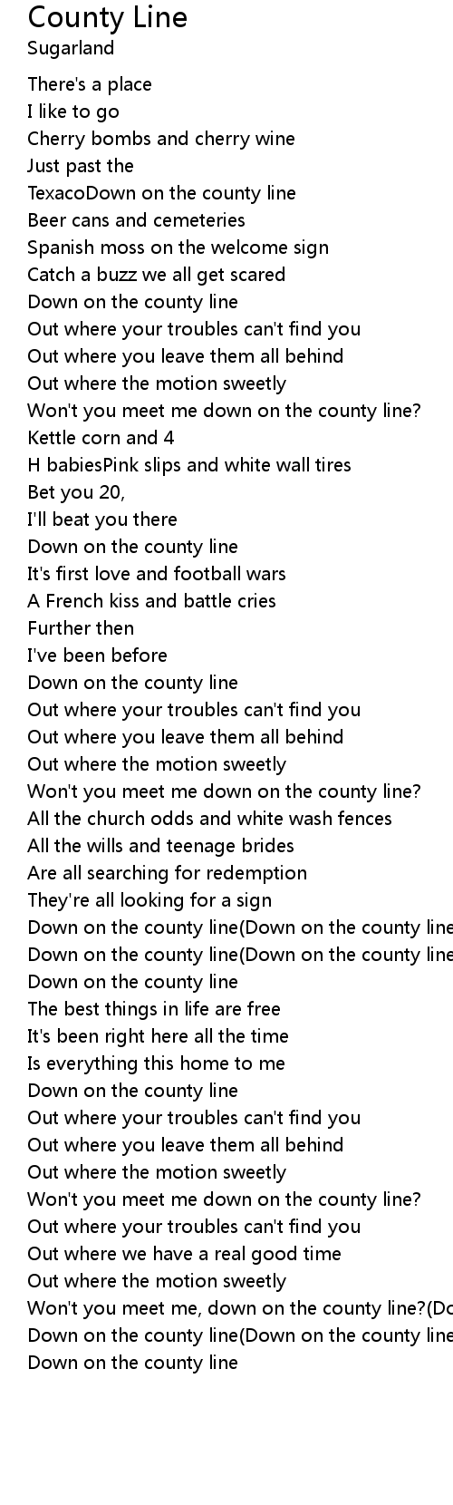 Won't you meet me, down on the county line?(Down on the county line) |