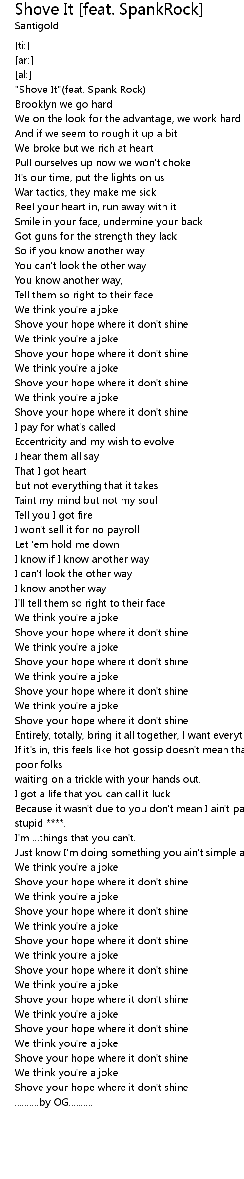 | [00:00.00] | "Shove It"(feat. Spank Rock) |
