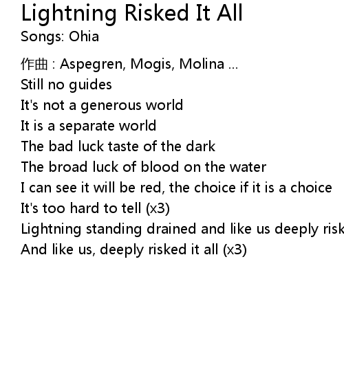 | Song | Lightning Risked It All |