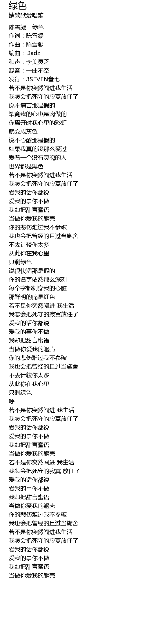 | [00:01.161] | 陈雪凝 - 绿色 |