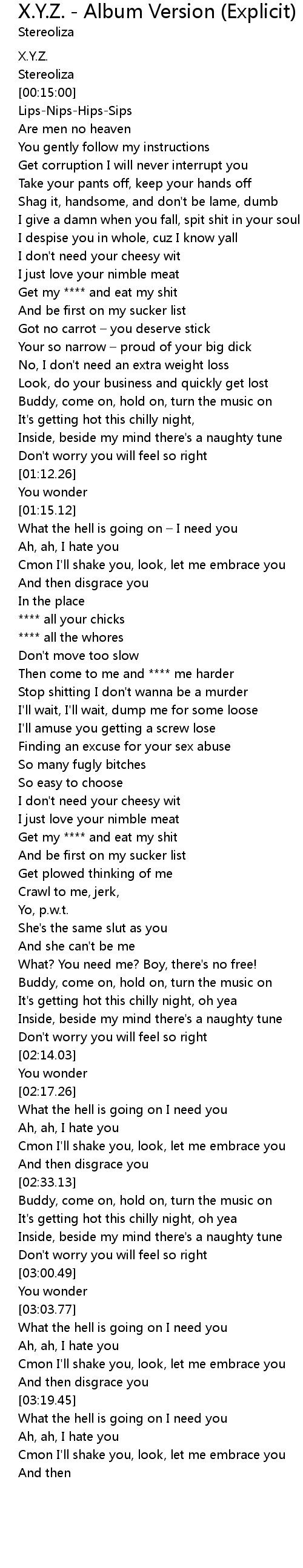 | [00:47.75] | Get my **** and eat my shit |
