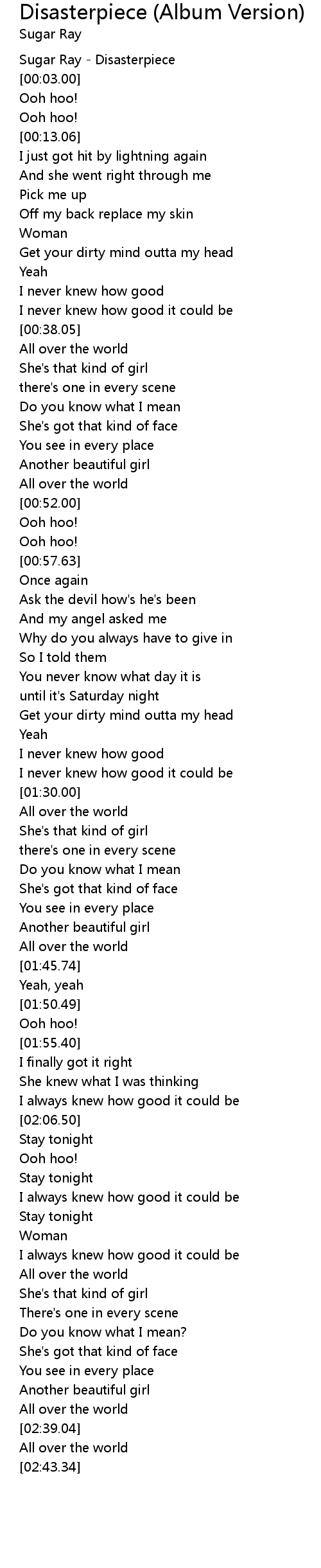 | [00:00.00] | Sugar Ray - Disasterpiece |