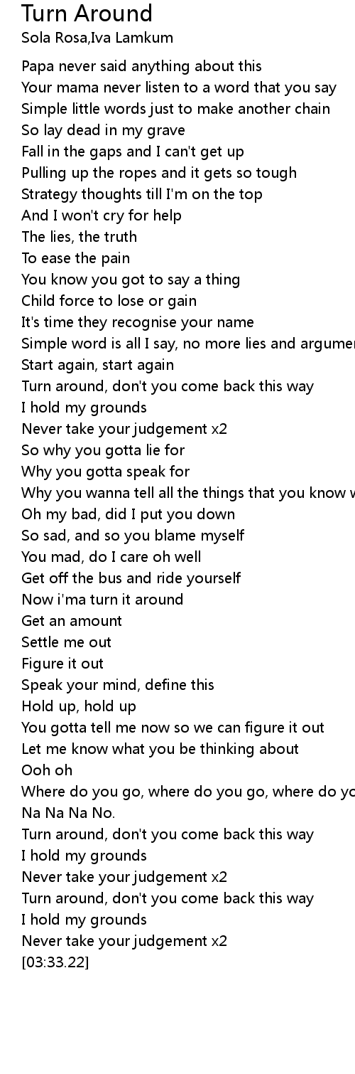 Now i'ma turn it around |
