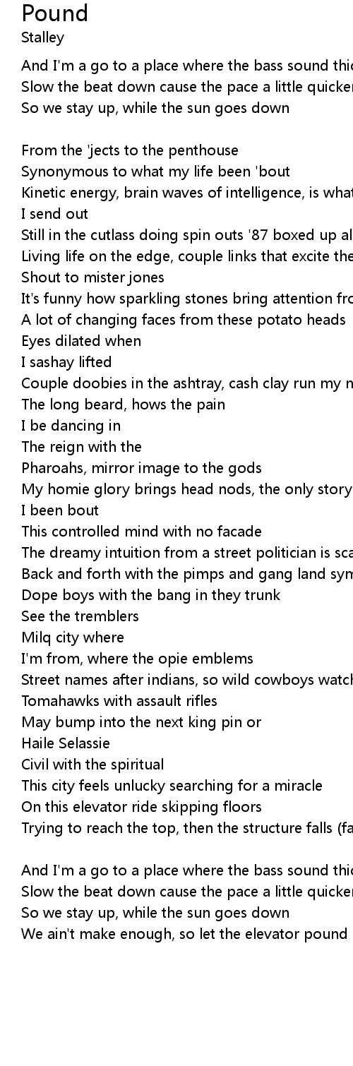 We ain't make enough, so let the elevator pound [Stalley:] |
