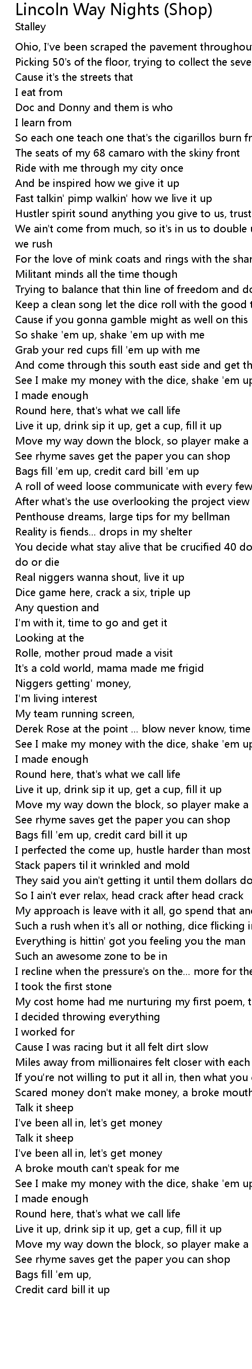 See I make my money with the dice, shake 'em up, double up, triple up, twice |