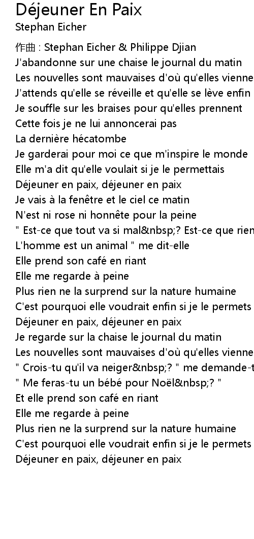 | 作曲 : Stephan Eicher & Philippe Djian | |