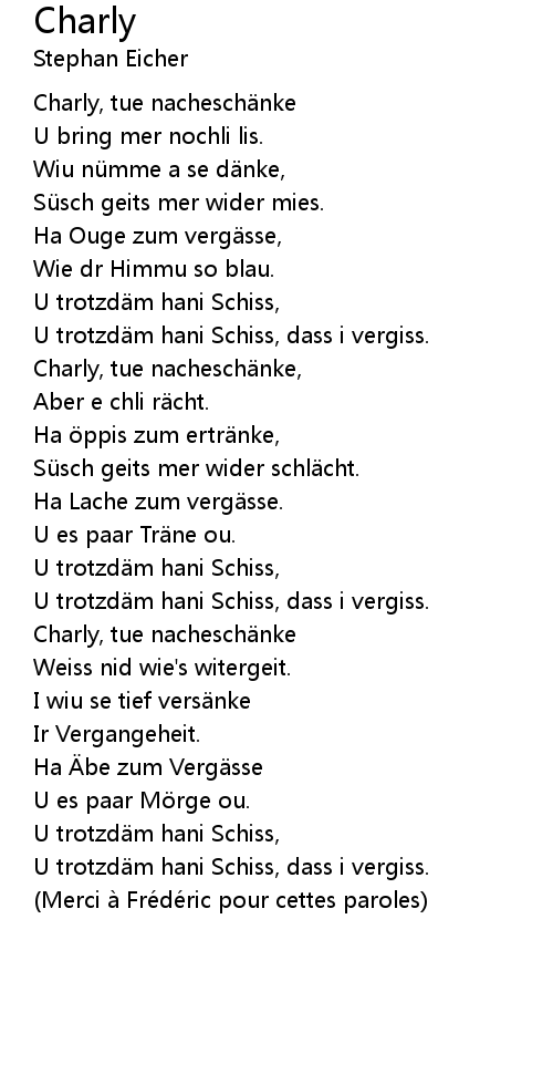 | Charly, tue nachesch nke, | |