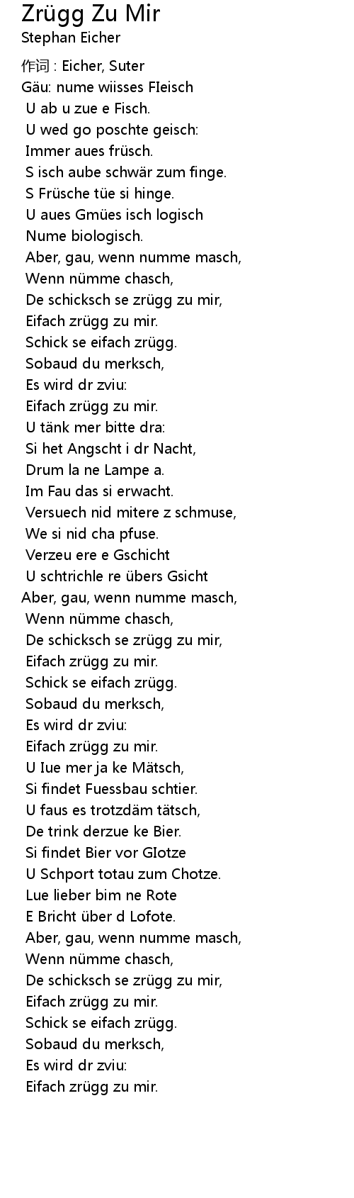 | Song | Zrügg Zu Mir |