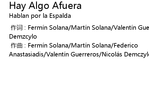 | [00:00.00-1] | 作曲 : Fermín Solana/Martín Solana/Federico Anastasiadis/Valentín Guerreros/Nicolás Demczylo |