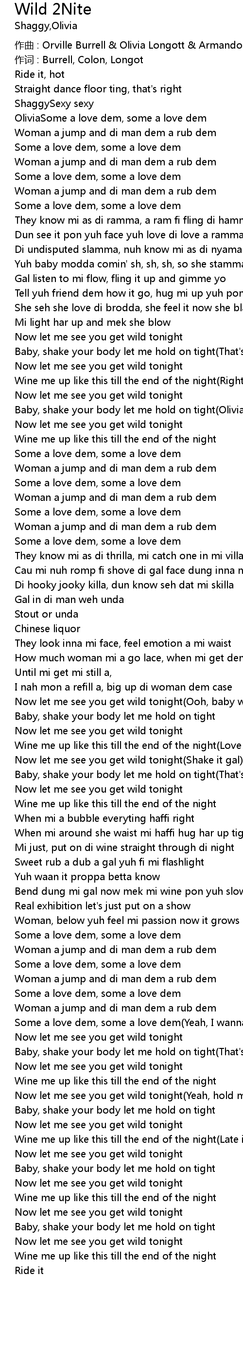 | Baby, shake your body let me hold on tight(Olivia) | |