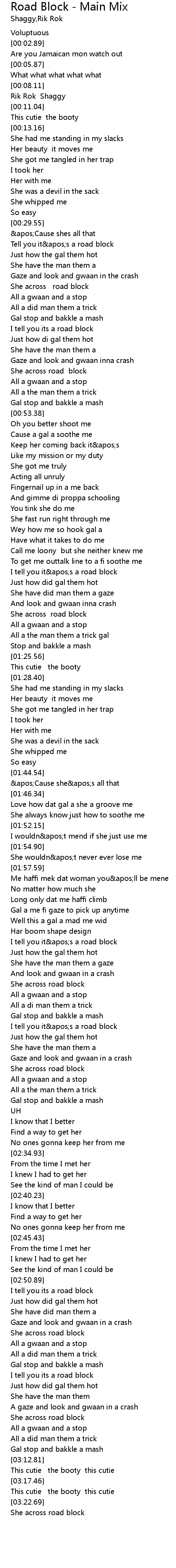 | [00:09.08] | Rik Rok Shaggy |