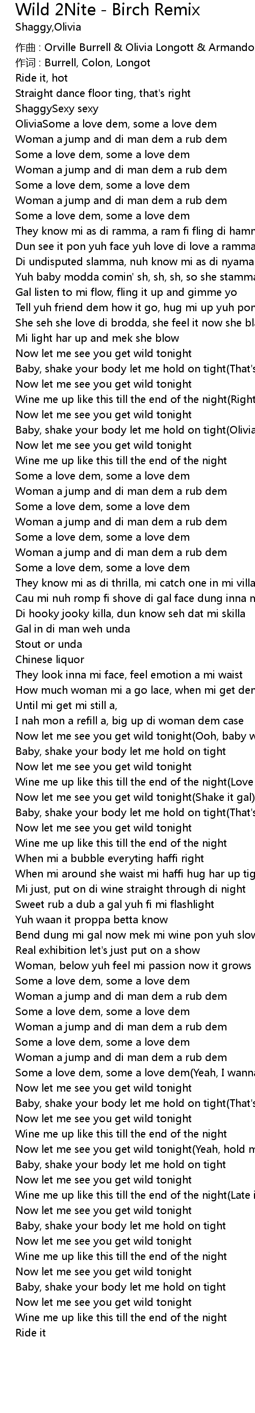 | Now let me see you get wild tonight Ooh, baby we can get wild | |