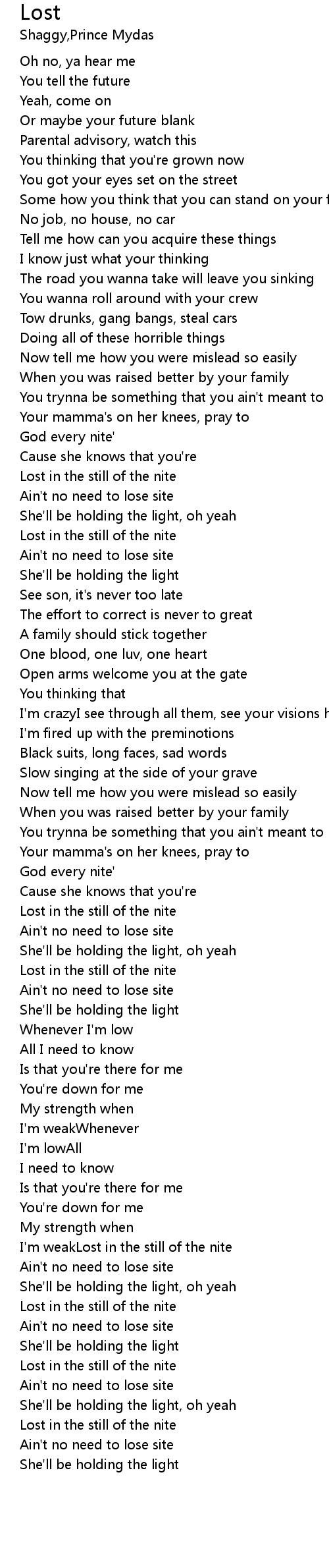 | Lost in the still of the nite | |