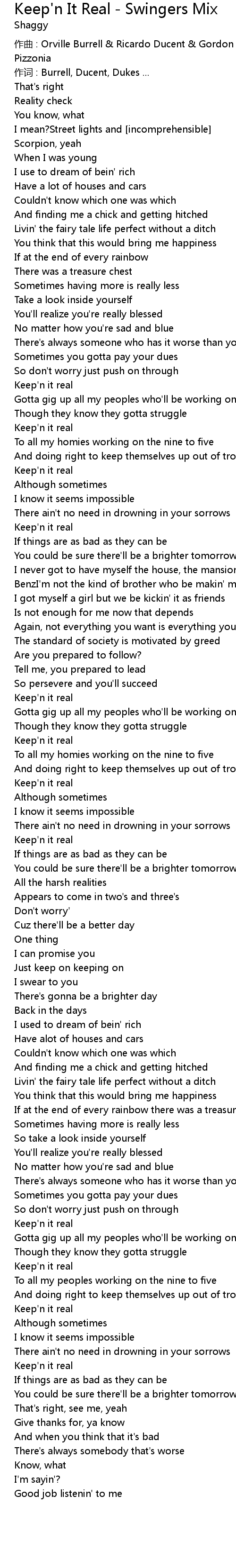 | Song | Keep'n It Real - Swingers Mix |