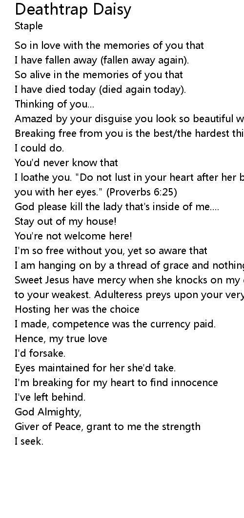 | Amazed by your disguise you look so beautiful with death in your eyes. | |