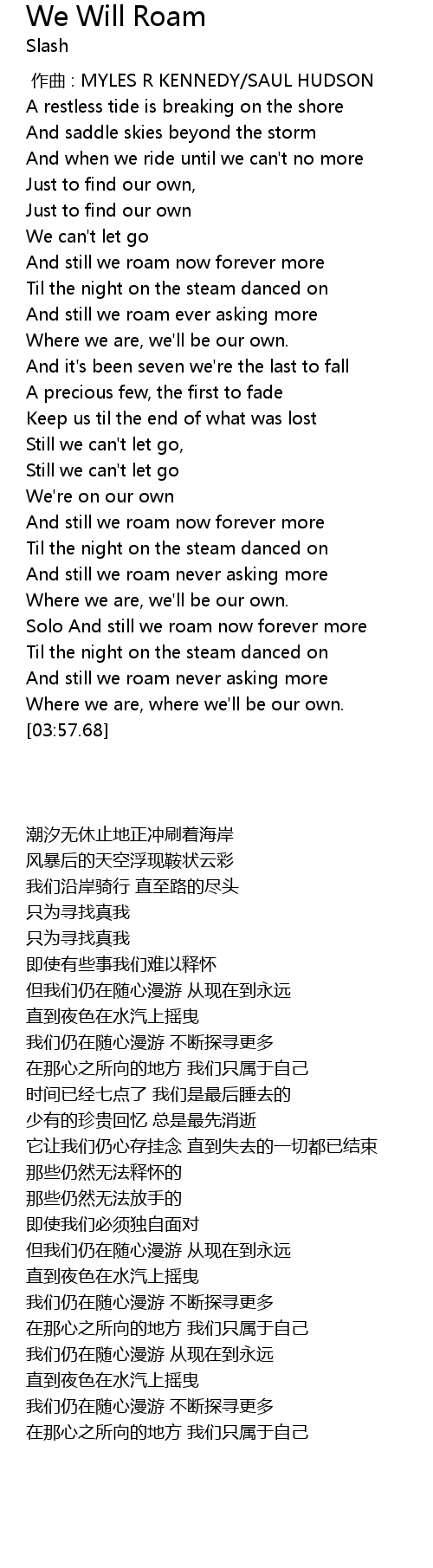 | [00:00.00] | 作曲 : MYLES R KENNEDY/SAUL HUDSON |