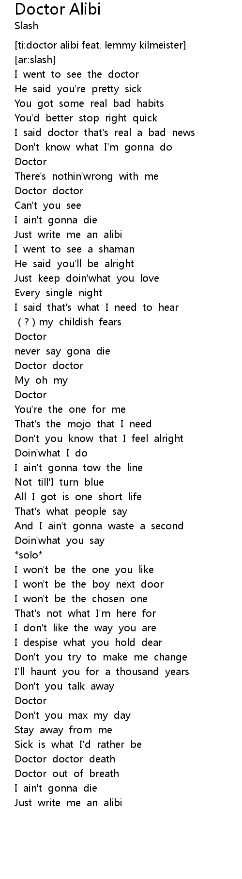 | Song | Doctor Alibi |