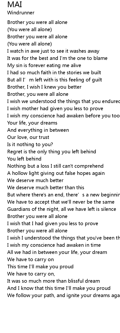 | [00:30.409] | Brother you were all alone |