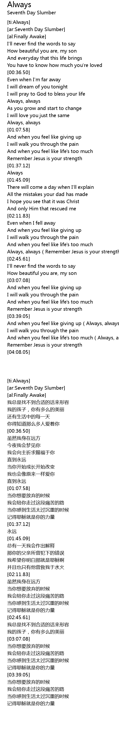 | [03:39.40] | And when you feel like giving up(Always, always) |