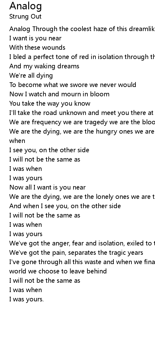 Analog Through the coolest haze of this dreamlike maze it has begun and all |